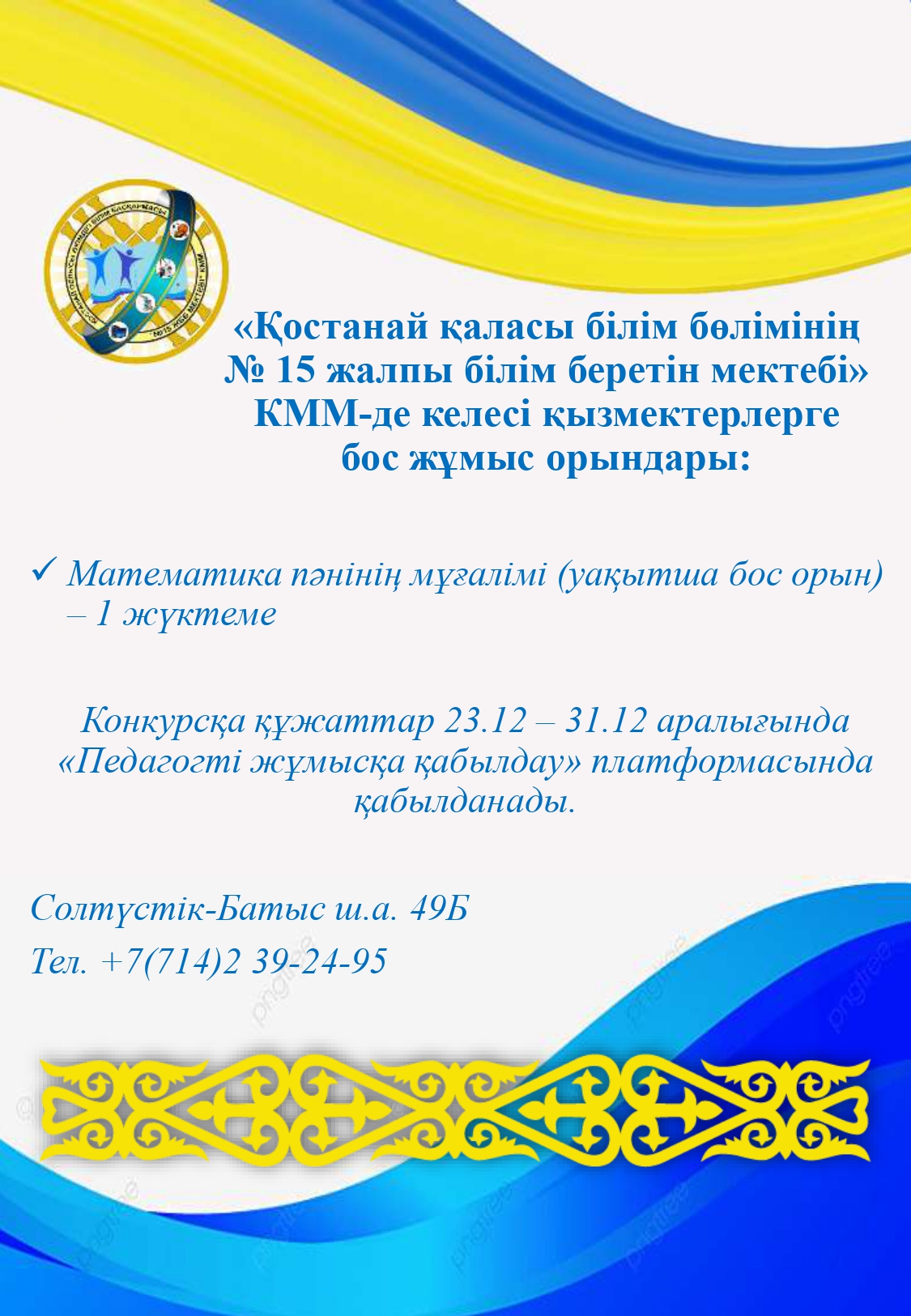№15 жалпы білім беретін мектебінің директоры