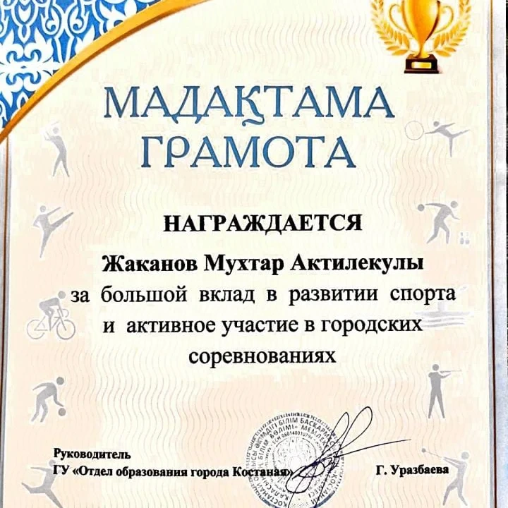 Ұжым атынан құрметті Мұхтар Актилекұлын лайықты марапатымен шын жүректен құттықтаймыз! Сізге зор денсаулық, кәсіби табыс және жаңа спорттық жеңістер тілейміз. Чемпиондар тәрбиелеуден шаршамаңыз!